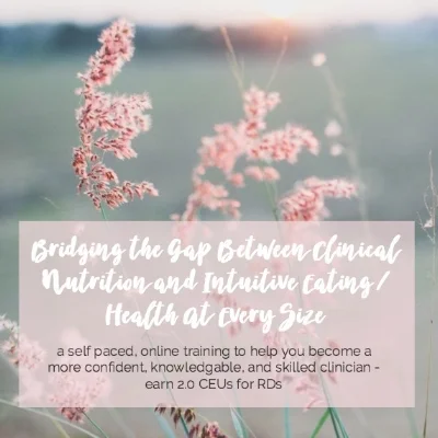 These courses were created to serve two purposes: to make the same work we do 1:1 with clients more accessible and affordable and to be a resource for health professionals who have been trained in traditional Western medicine, but want to provide more effective and ethical care by approaching medical diagnoses through an Intuitive Eating and Health at Every Size framework.